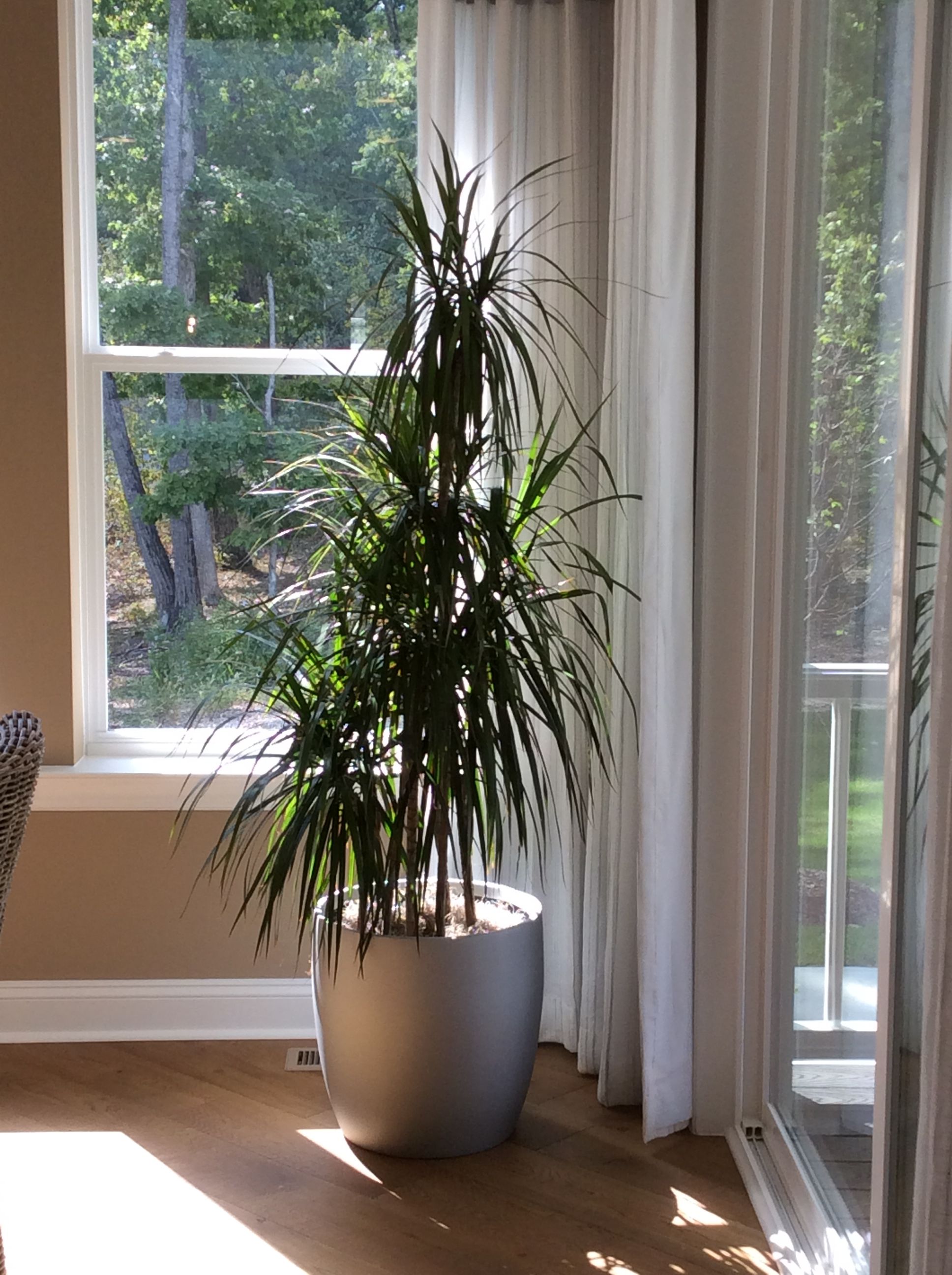 The guaranteed maintenance program consists of a weekly visit to water, spray, prune, trim, remove all dead leaves on and surrounding the plant, to turn the plant regularly to insure even growth, fertilize, add soil and top dressing as needed, clean, wipe, dust and shine the leaves as needed, clean and dust the containers, and replace plants that have deteriorated in appearance or have outgrown their areas.